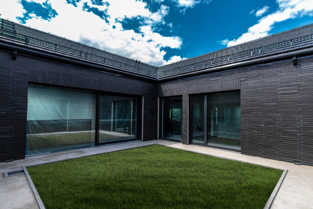 Dzięki otwarciu przestrzeni na ogród oraz zastosowaniu dużych przeszkleń, wnętrza wypełnia naturalne światło, a dom zyskuje wyjątkowy charakter i lekkość. Atrium może pełnić funkcję zielonego patio lub kameralnej strefy relaksu – idealnej o każdej porze roku.