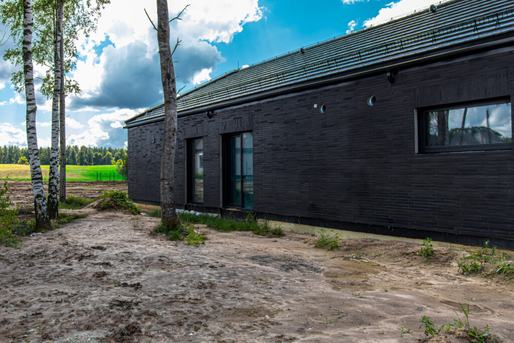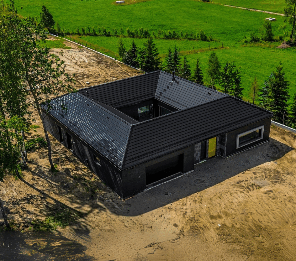 W tej wersji postawiono na odważną czarną kolorystykę elewacji, która podkreśla nowoczesny charakter bryły. Ogromne przeszklenia od Amar okna i drzwi otwierają wnętrza na otoczenie, dzięki czemu wypełnia je światło i wyjątkowy klimat.