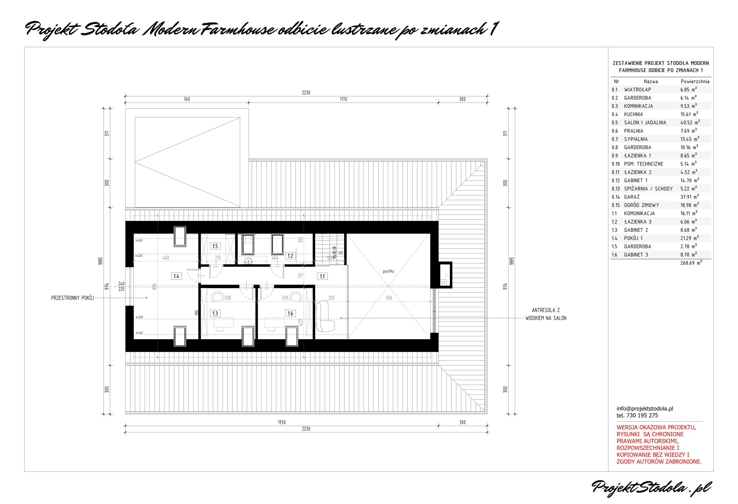 Powierzchnia użytkowa budynku: 268,69 m2