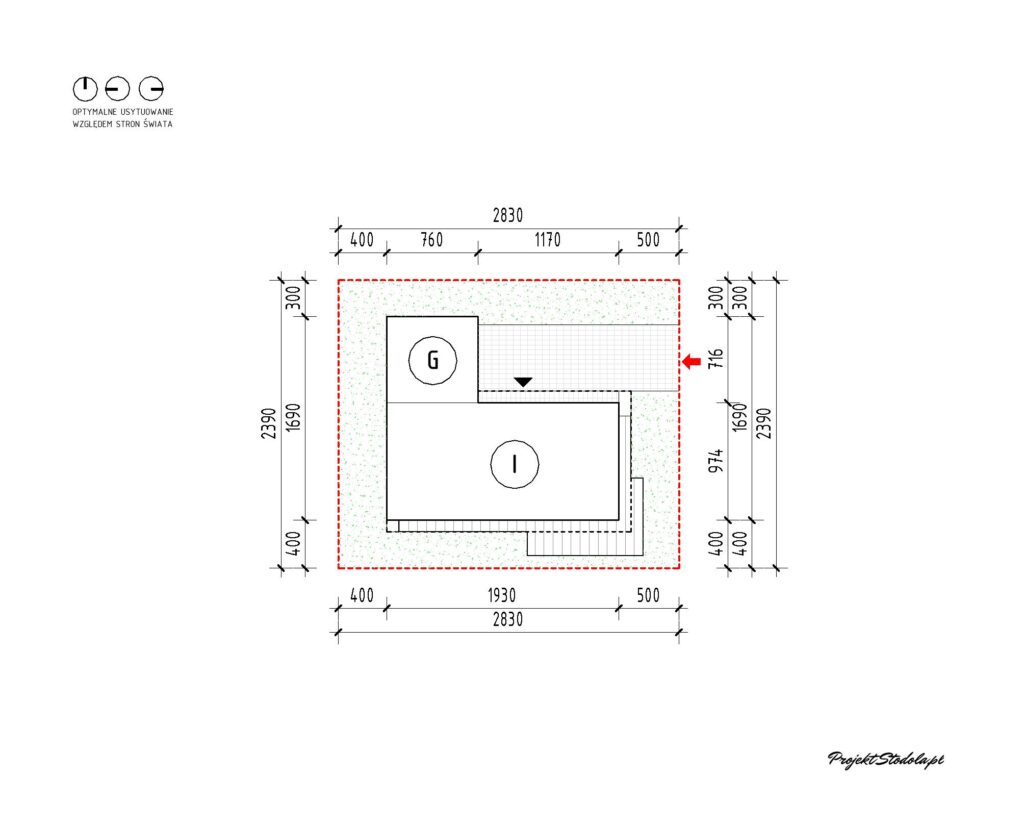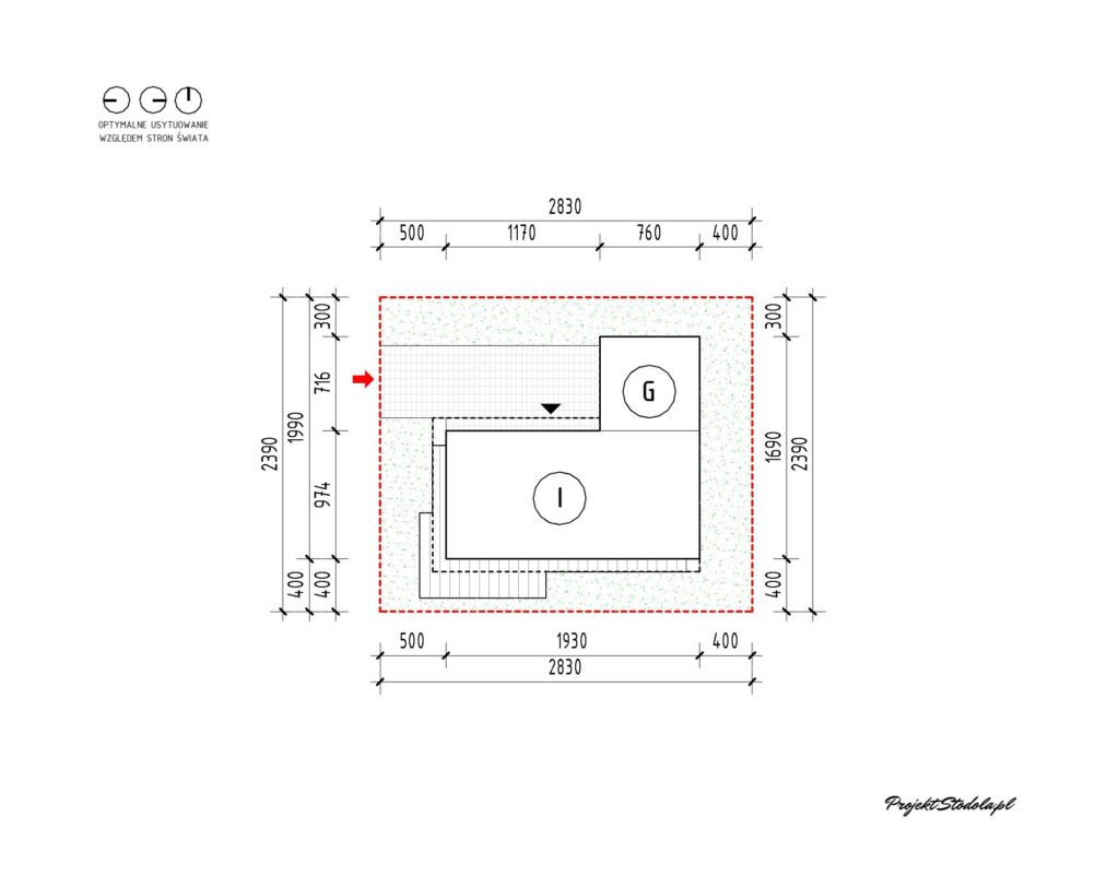 - Wariant 2. min. wymiary działki 28,30 x 23,90 m