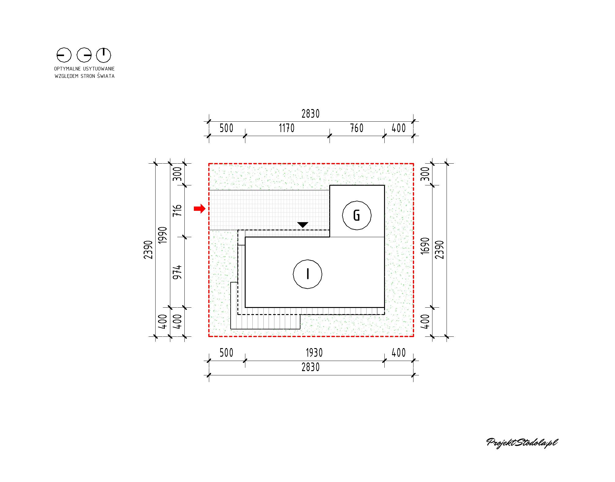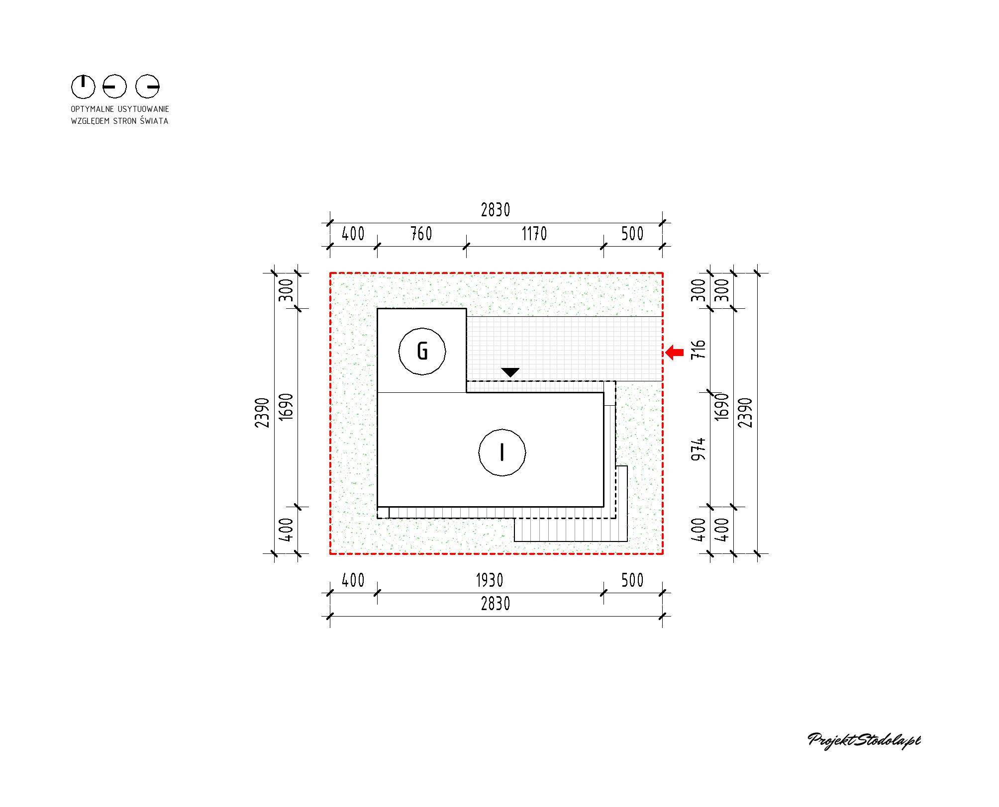 - Wariant 2. min. wymiary działki 28,30 x 23,90 m