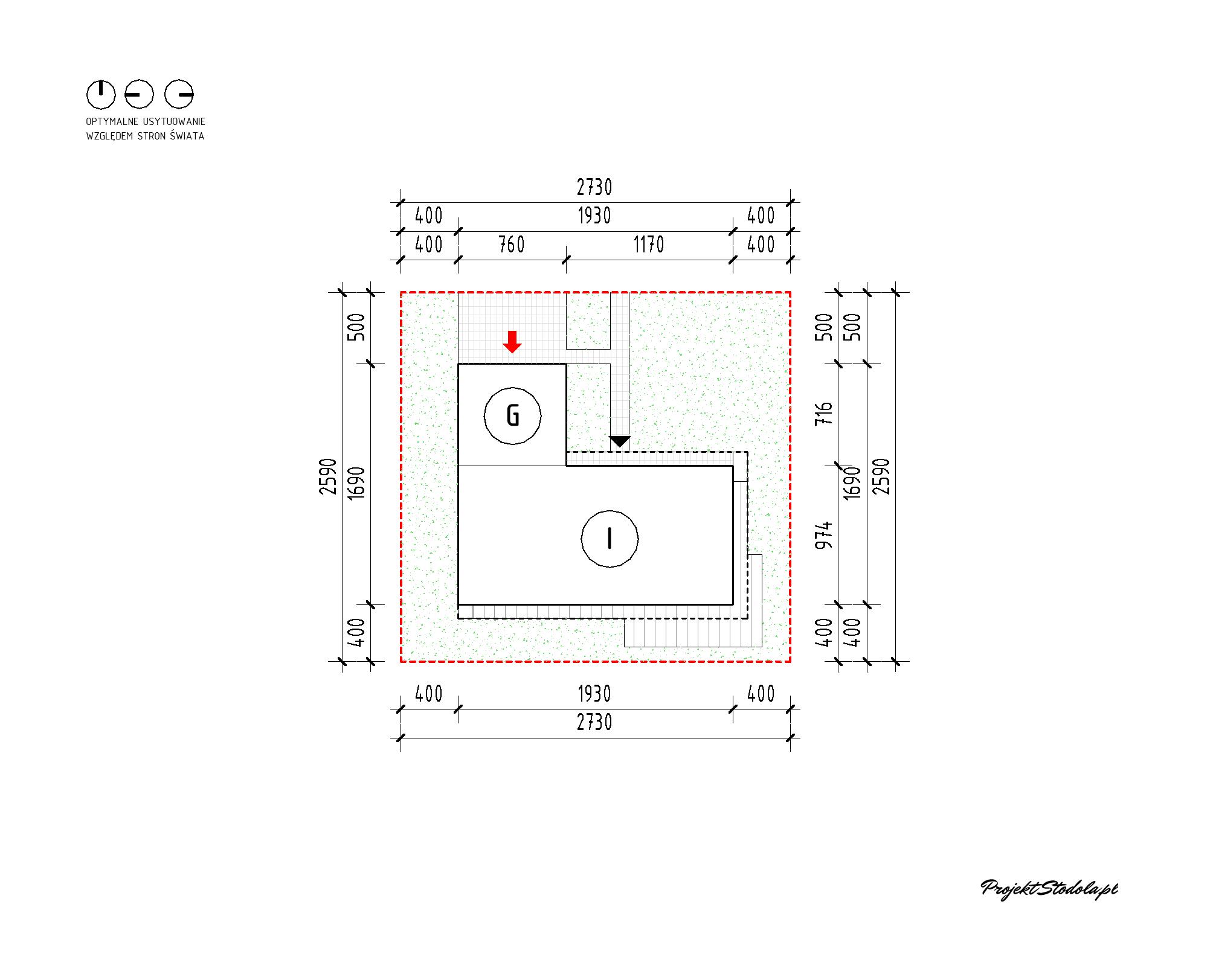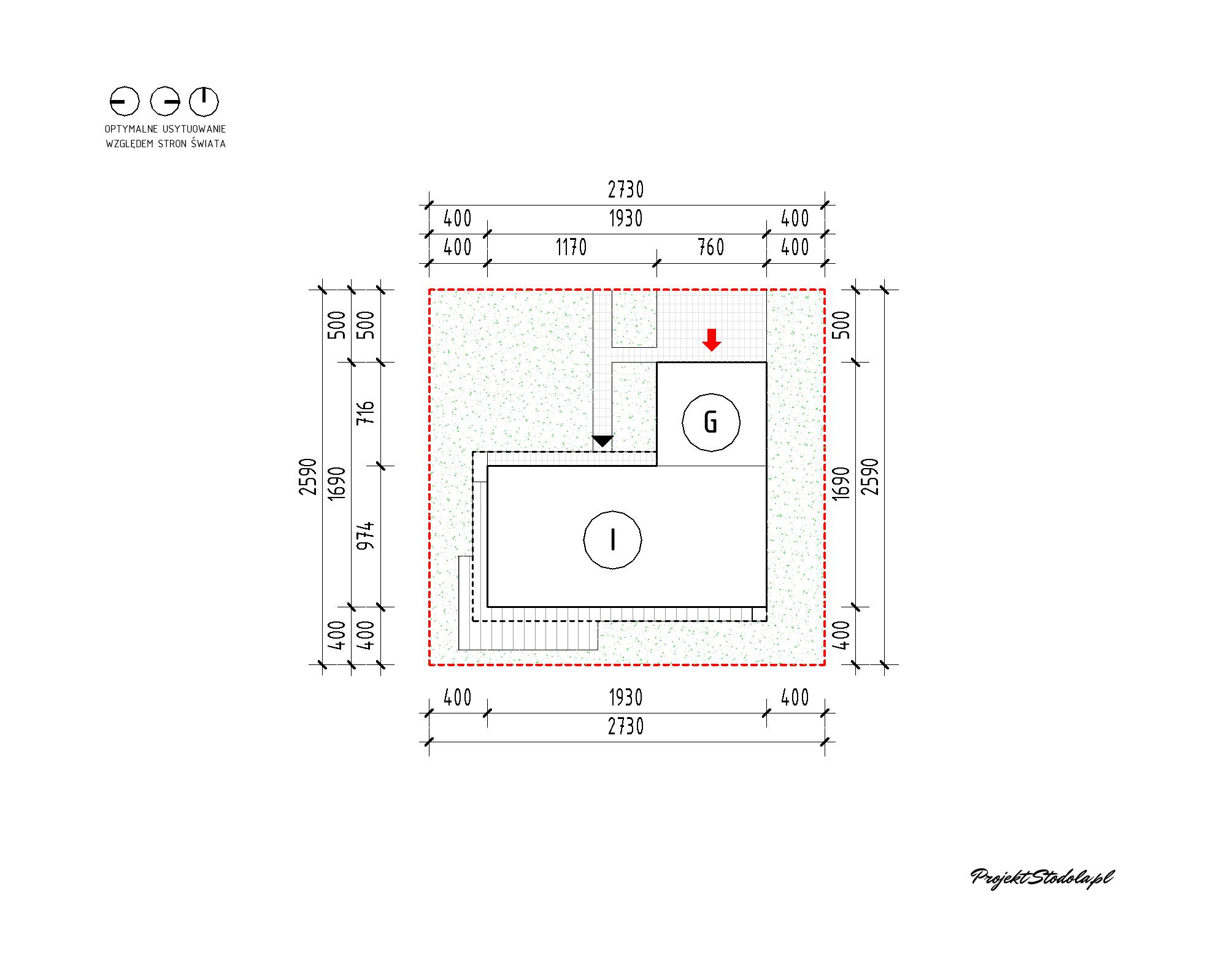 - Wariant 1. min. wymiary działki 27,30 x 25,90 m