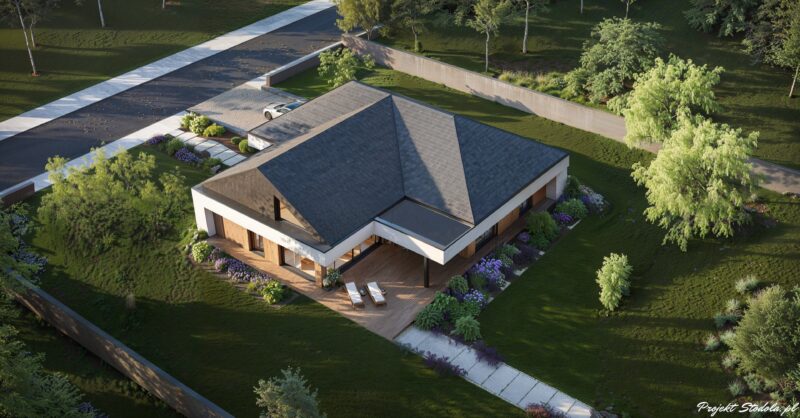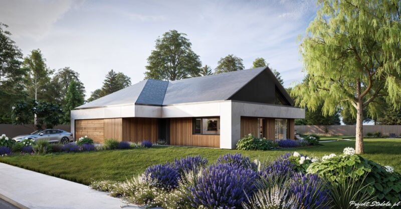 Dodatkowo prosty dach pozwala na montaż instalacji fotowoltaicznej również w typie wbudowanym.