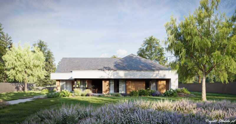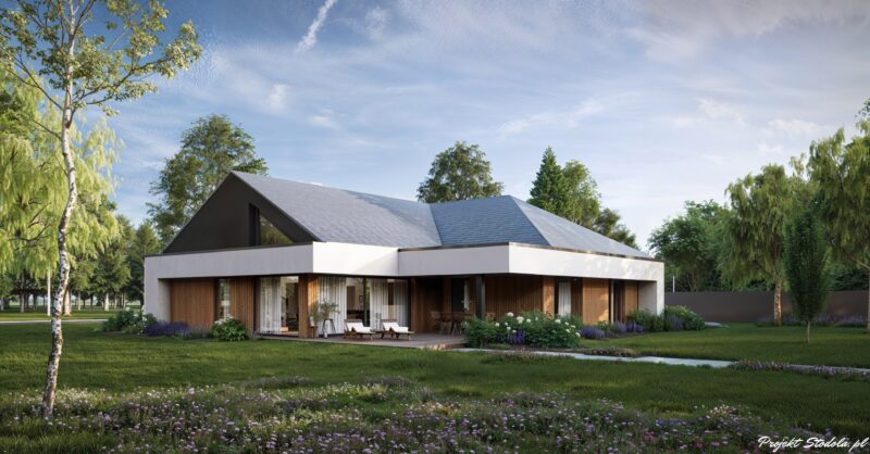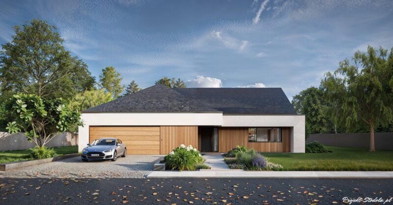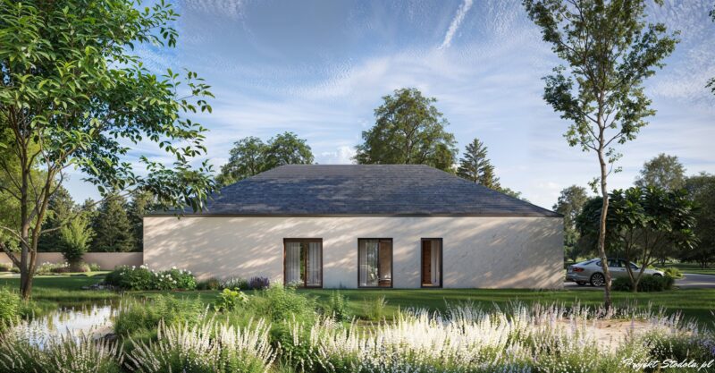 Projekt S+ Superb skradł Twoje serce, ale chciałbyś coś mniejszego? Dom parterowy Projekt Stodoła S+ Superb Minus to mniejsza wersja tego projektu. Posiada wszystkie te funkcjonalności co wersja bazowa, ale ma mniejszą szerokość i metraż. Dzięki temu pasuje do działek z węższym wjazdem. Posiada ponadto duże przeszklenia w salonie, wygodną kuchnią ze spiżarnią i 4 sypialnie. Projekt ma przemyślany i intuicyjny układ funkcjonalny. Projekt z bardzo dużymi przeszkleniami, przez które będziesz mógł podziwiać ogród.
