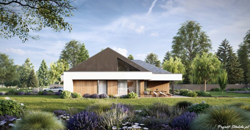 Projekt wyposażony jest w pompę ciepła i wentylację mechaniczną z rekuperacją.