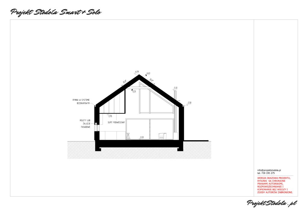 - Wysokość budynku w kalenicy:6,79 m