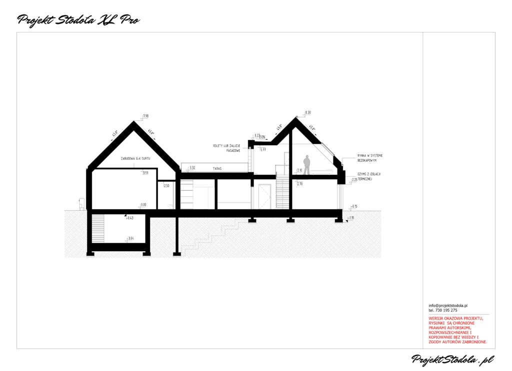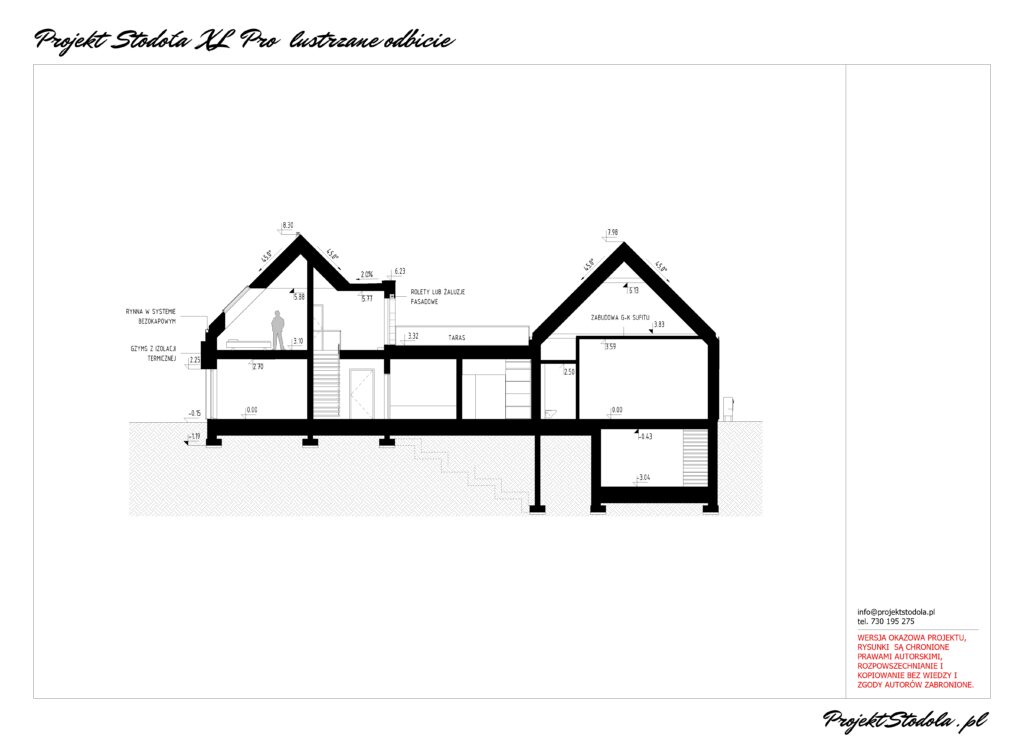 - Pod warunkiem zadbania o estetykę Obiektu Budowlanego i zasady konstrukcji Kupujący może doprojektować (lub zlikwidować) dodatkowe elementy zewnętrzne Obiektu Budowlanego takie jak: garaż, tarasy naziemne, ogrody zimowe, a także elementy wewnętrzne, takie jak antresole.