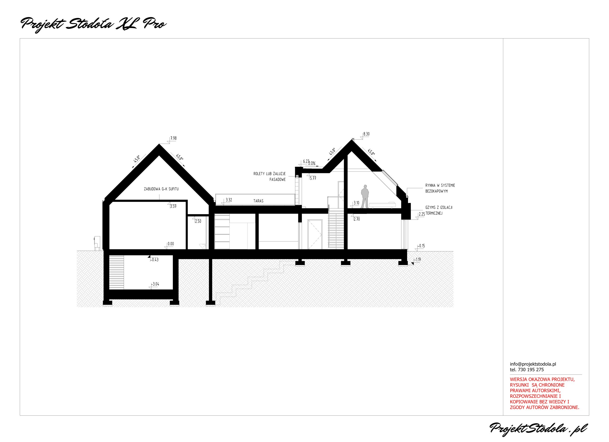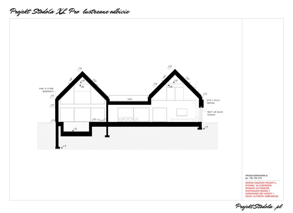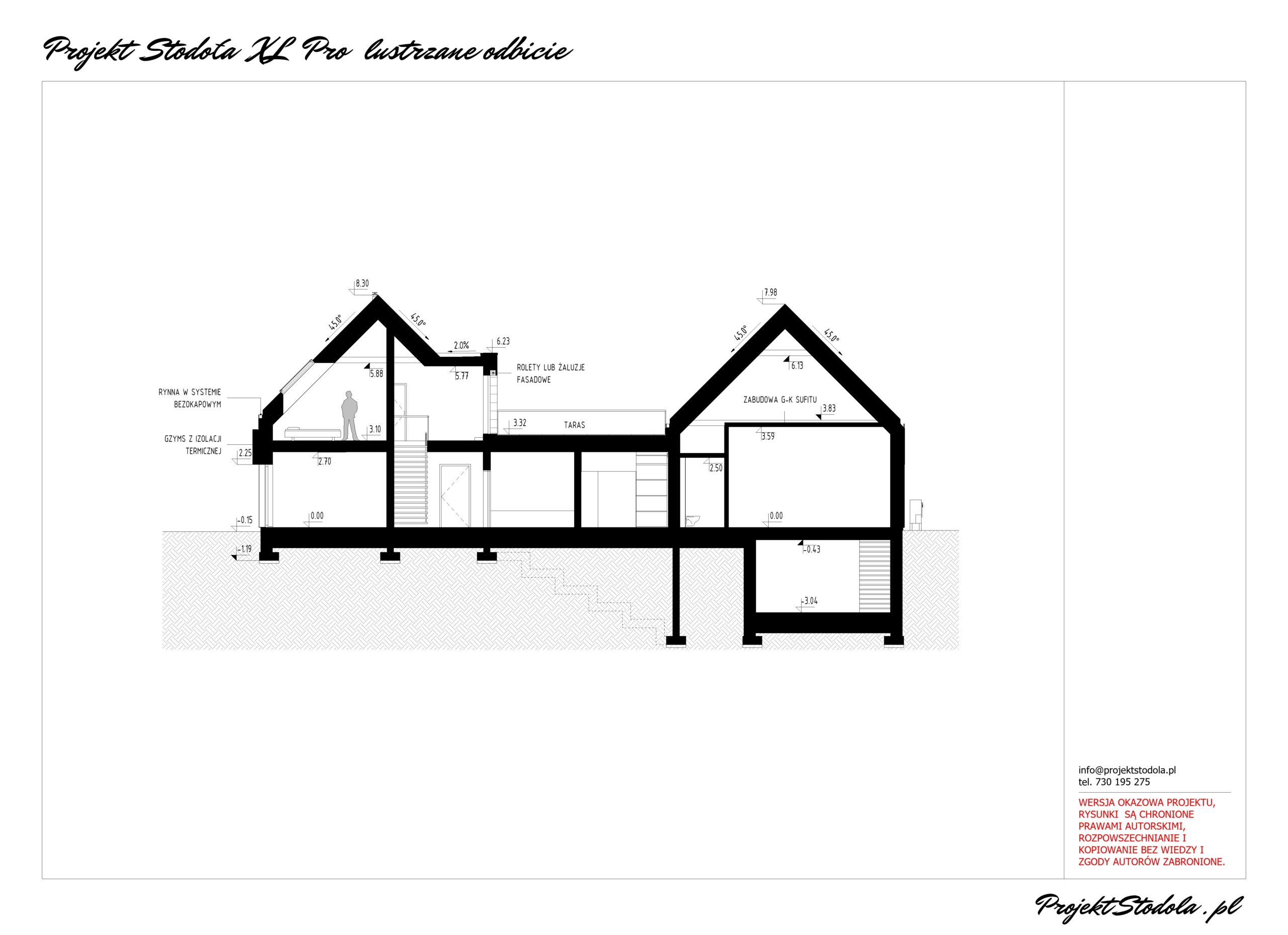- Wysokość budynku w kalenicy:8,30 m