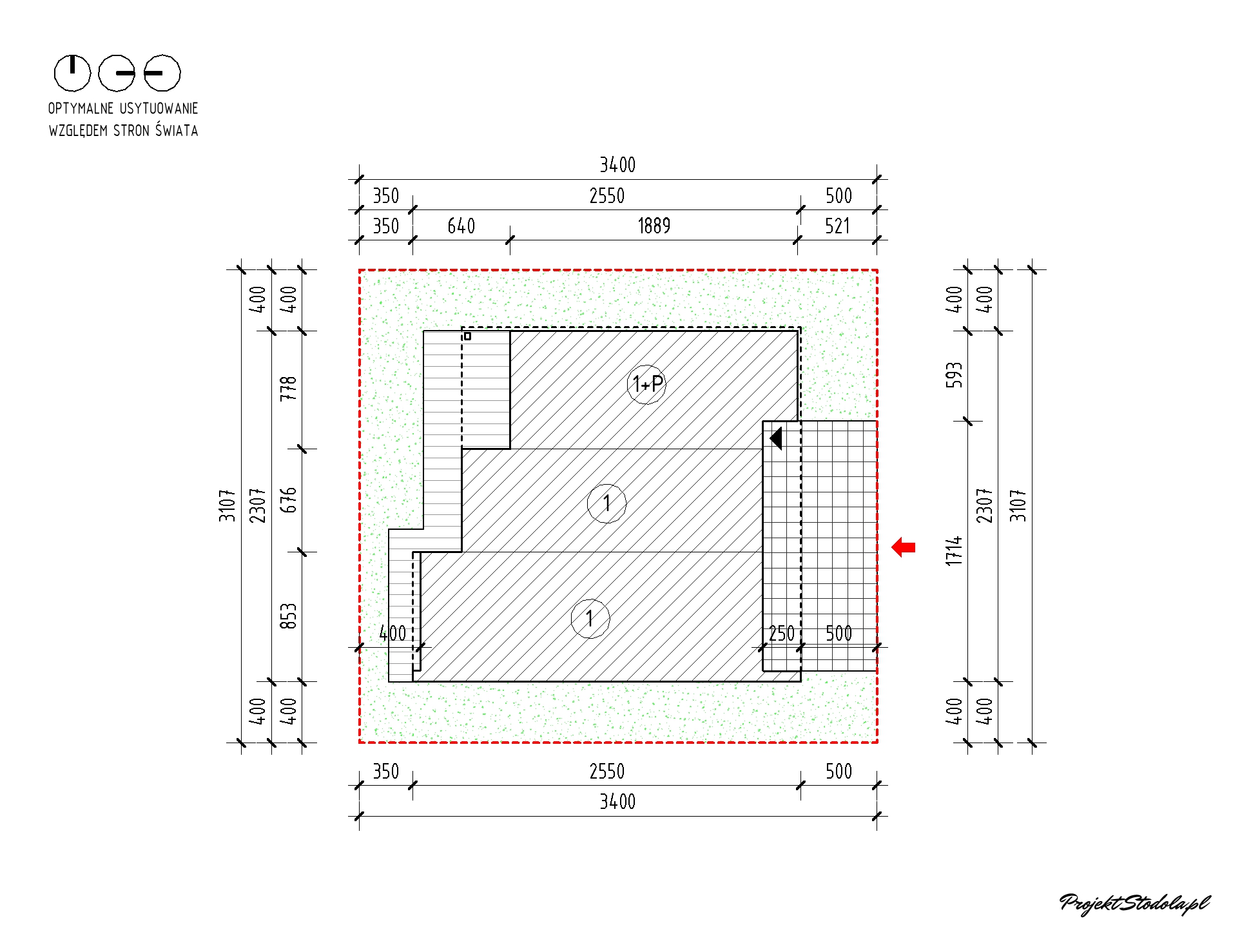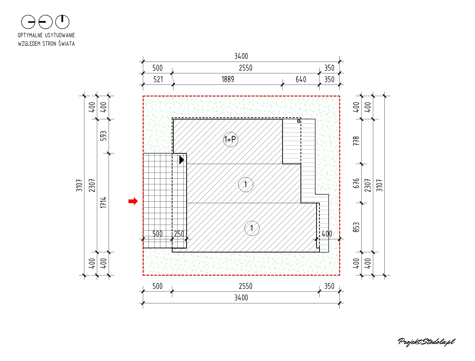 - Minimalne wymiary działki 31,07 x 34 m