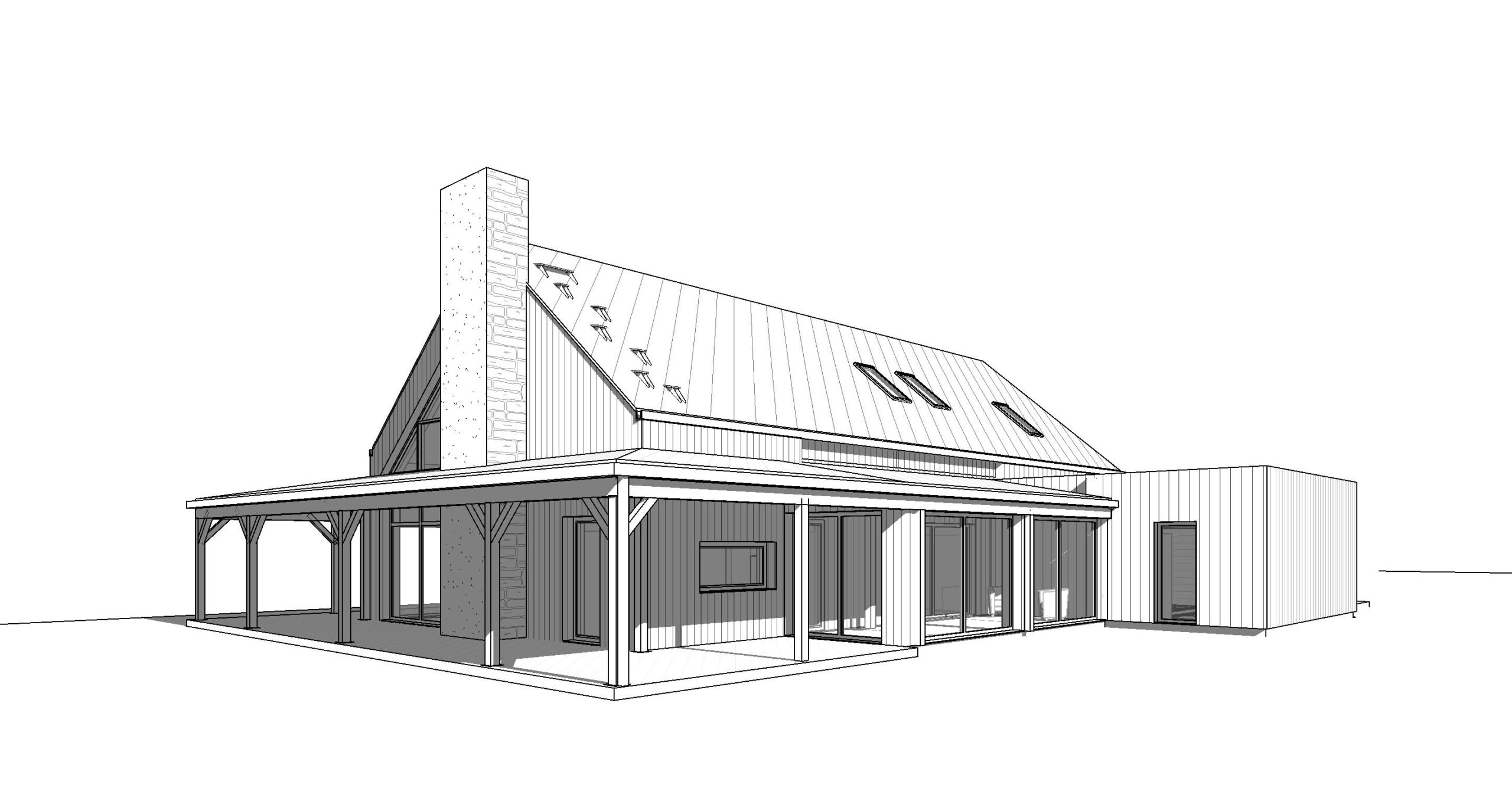 Oczywiście podjęcie decyzji o otwartym podjeździe wynikało też z usytuowania budynku. Z uwagi na niedużą działkę, budynek Stodoły M jest maksymalnie przesunięty w stronę ulicy- jest 5 m od granicy działki, tak, by jak najwięcej przestrzeni pozostało od strony ogrodowej.